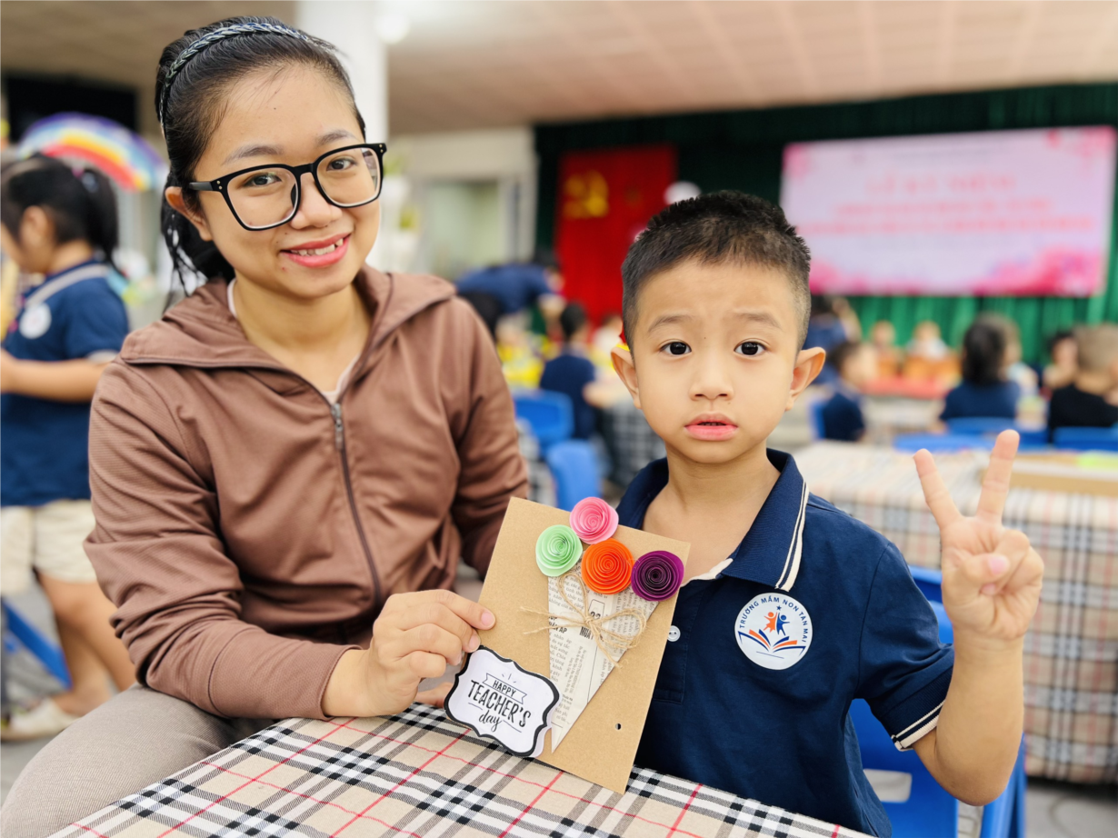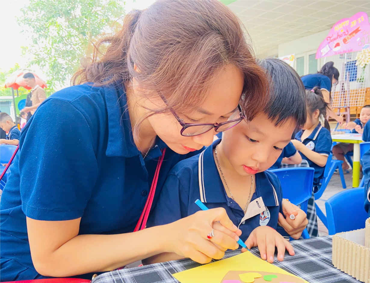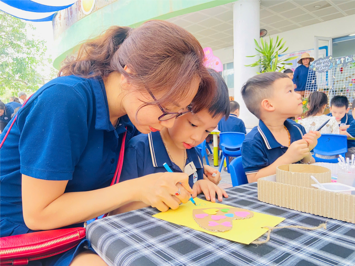 Các bạn nhỏ MGN B2 làm bưu thiếp tặng cô nhân ngày 20/11