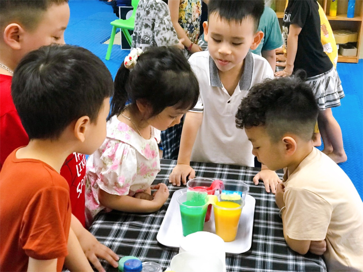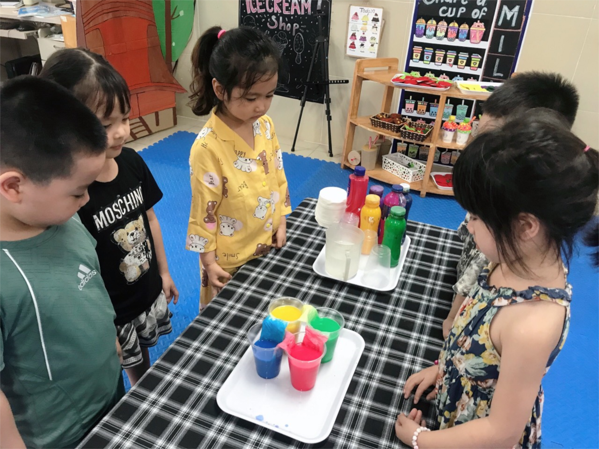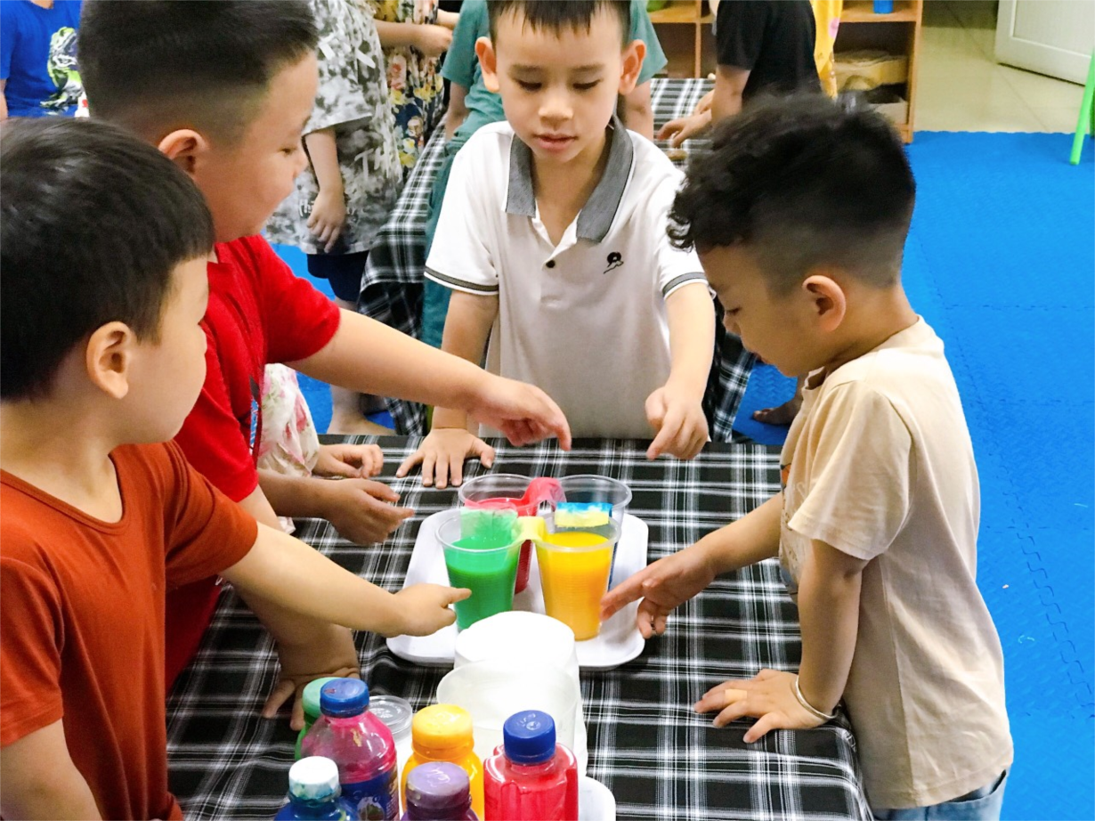 Các bé MGN B2 vơi thí nghiệm: " Sự biến đổi màu"
