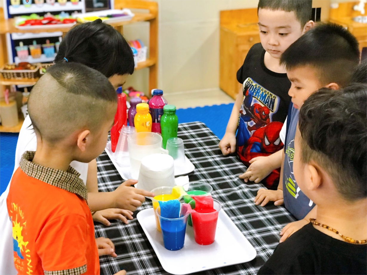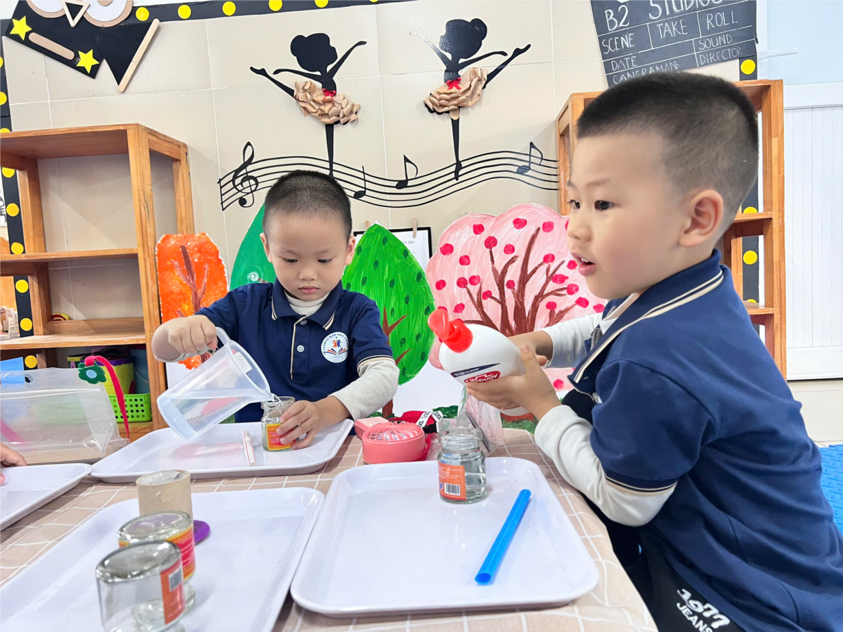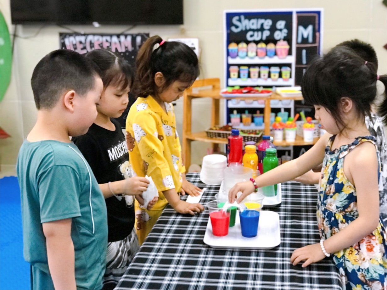Các bé MGN B2 vơi thí nghiệm: " Sự biến đổi màu"