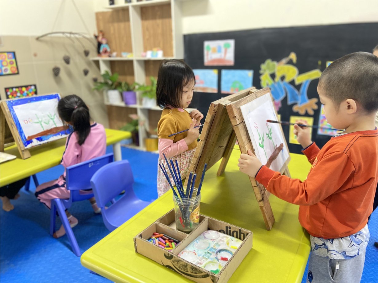 Ảnh tháng 1- Các bé lớp MGL A3 vẽ vườn cây ăn quả