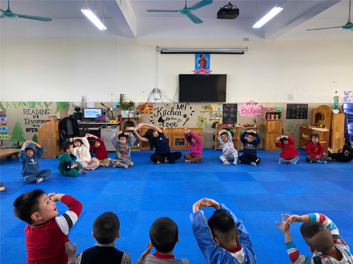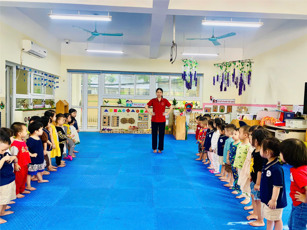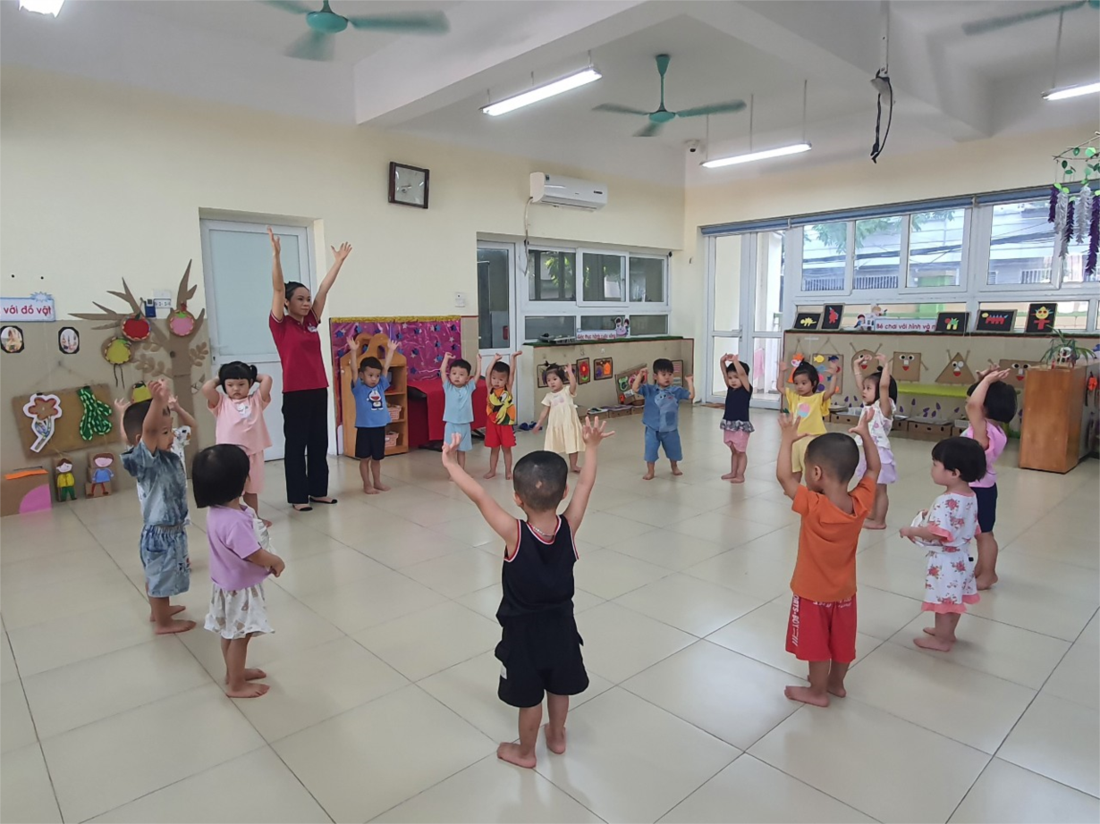 Các bạn nhỏ MGN B2 thích thú với giờ học: Hướng dẫn các động tác thể dục sáng