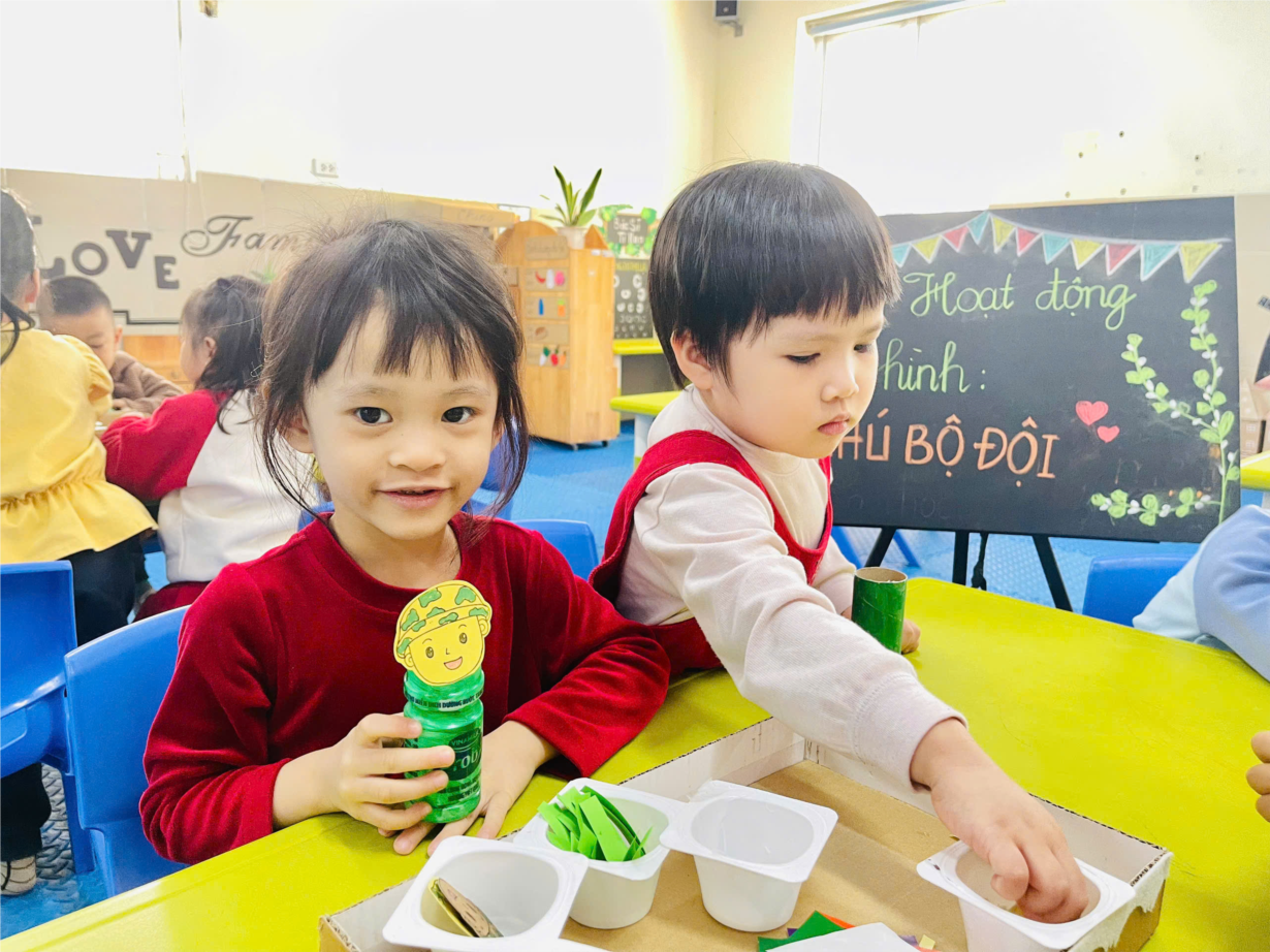 Ảnh đẹp tháng 12 - Hoạt động tạo hình chú bộ đôị của các bé lớp C1