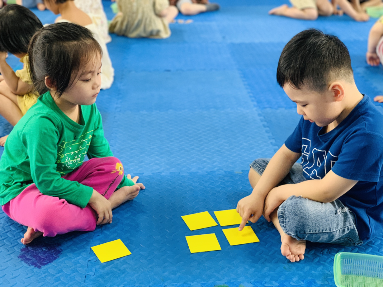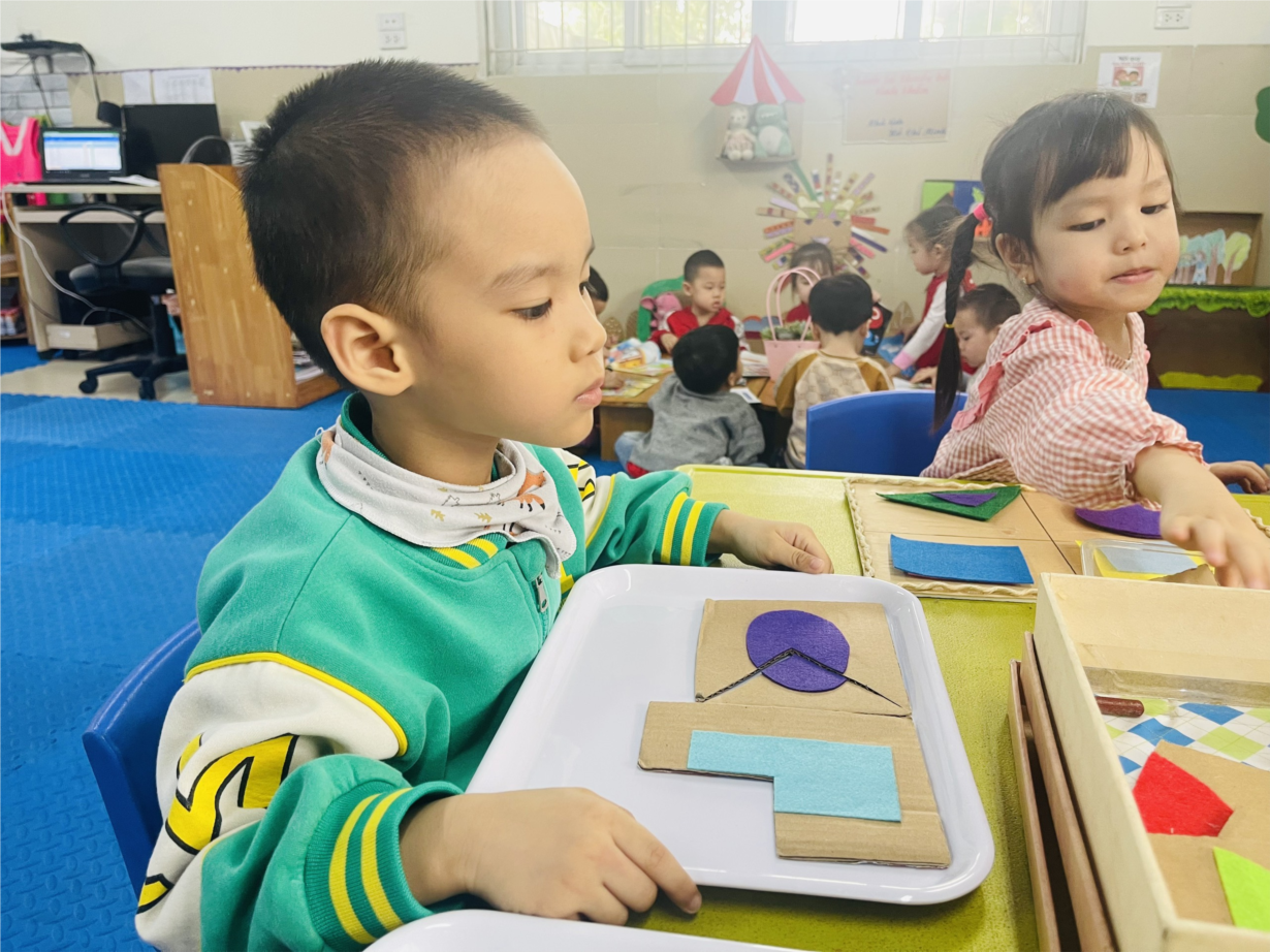 Các bé lớp MGB C1 chơi trò chơi với hình học