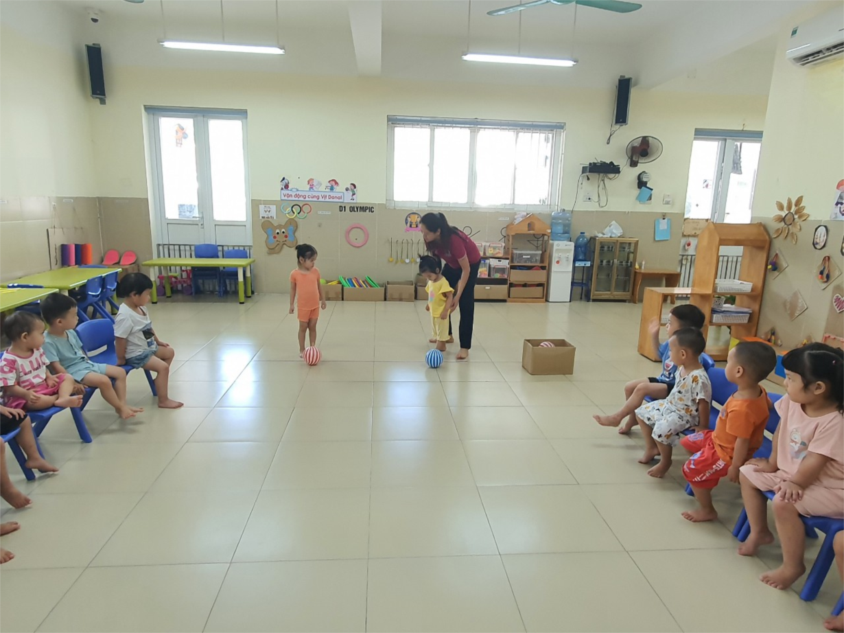 Hoạt động học: Đá bóng về phía trước của các bé lớp nhà trẻ D1