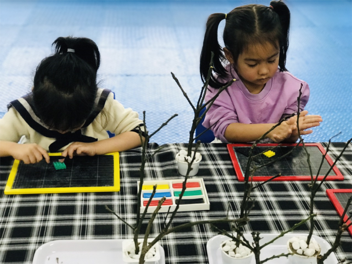 Ảnh đẹp tháng 2- Các bé MGL A3 trong giờ học tách- gộp 9 đối tượng tnahf 2 phần theo các cách khác nhau