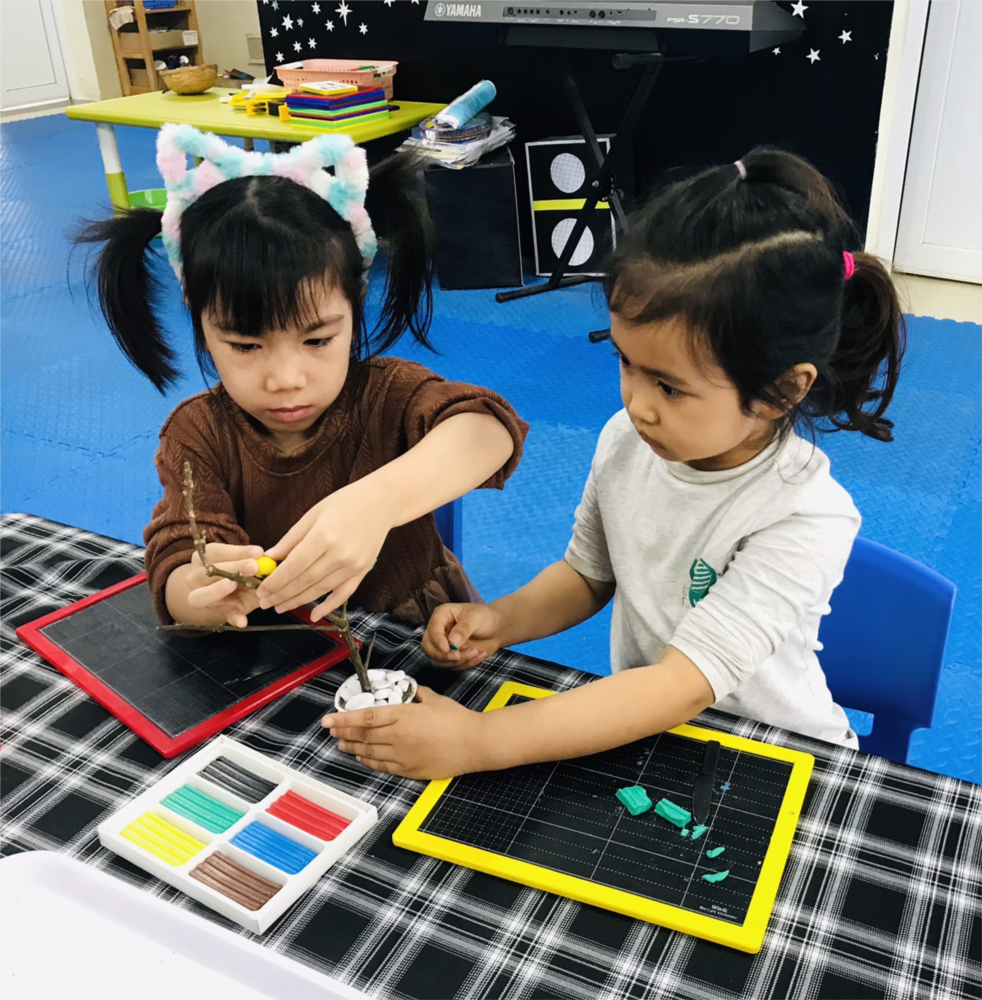 Cùng tạo hình lá cây với các bạn nhỏ lớp B2