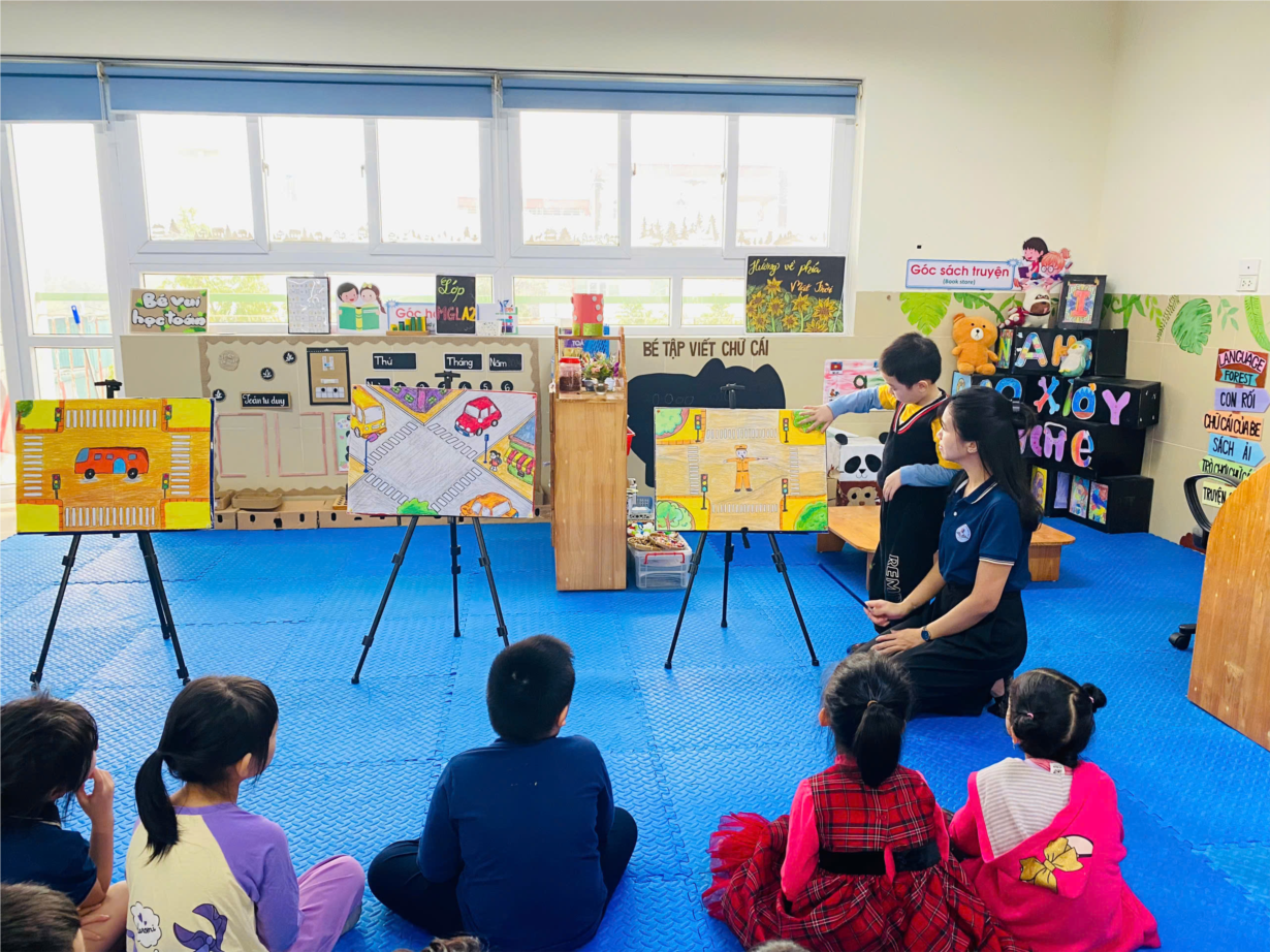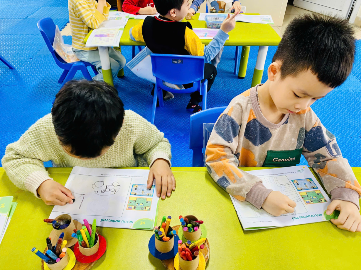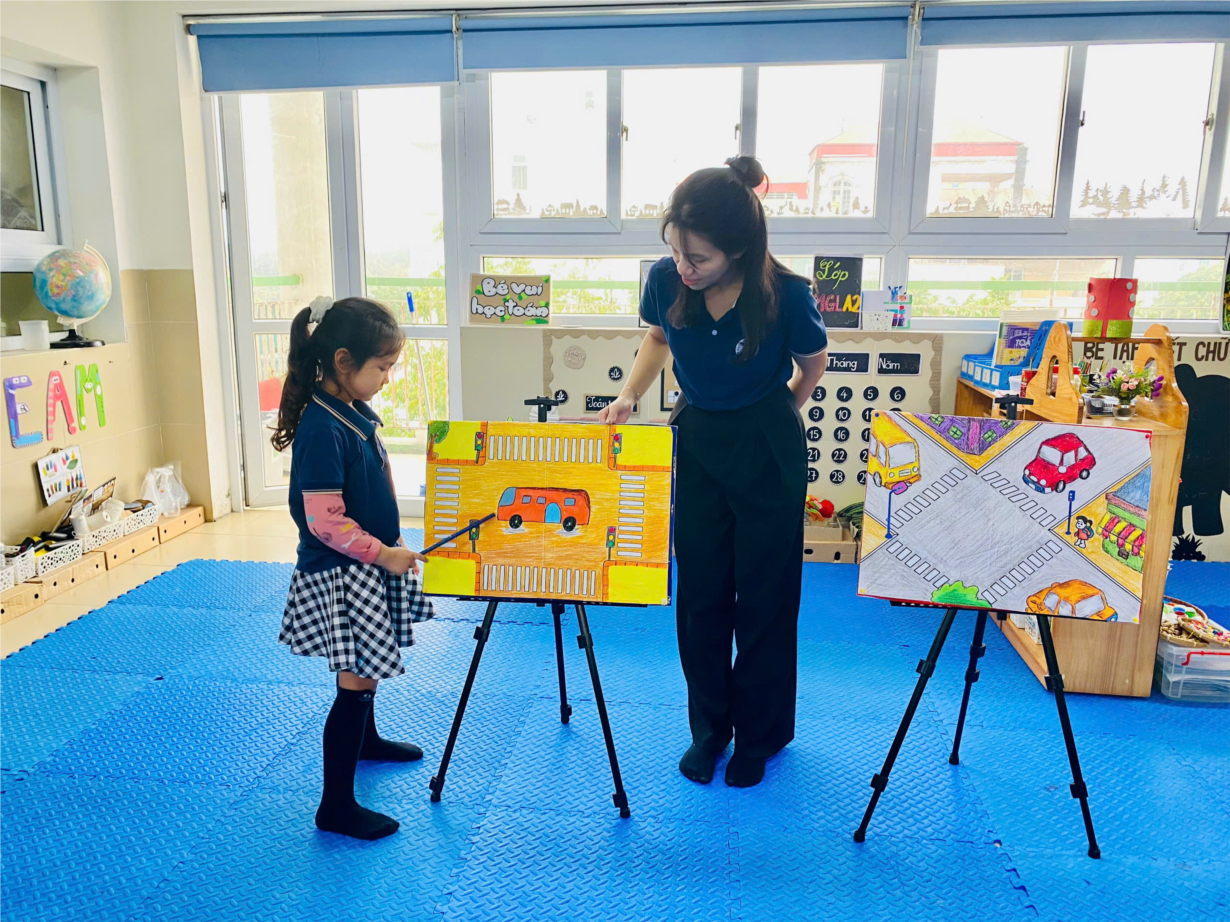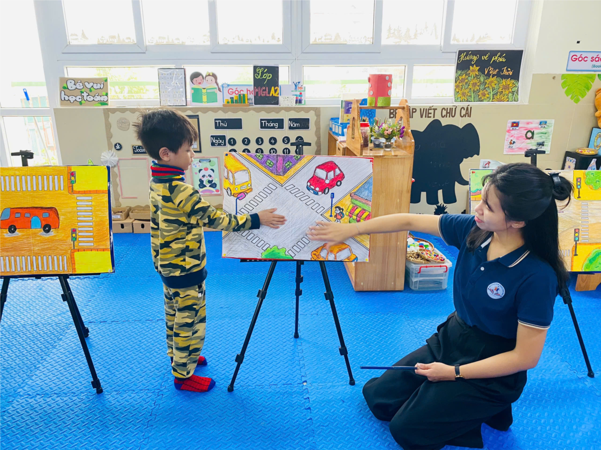 Ảnh đẹp tháng 3: Hoạt Động Tạo Hình: Các Bé MGL A2 Vẽ Ngã Tư Đường Phố Đầy Sáng Tạo!