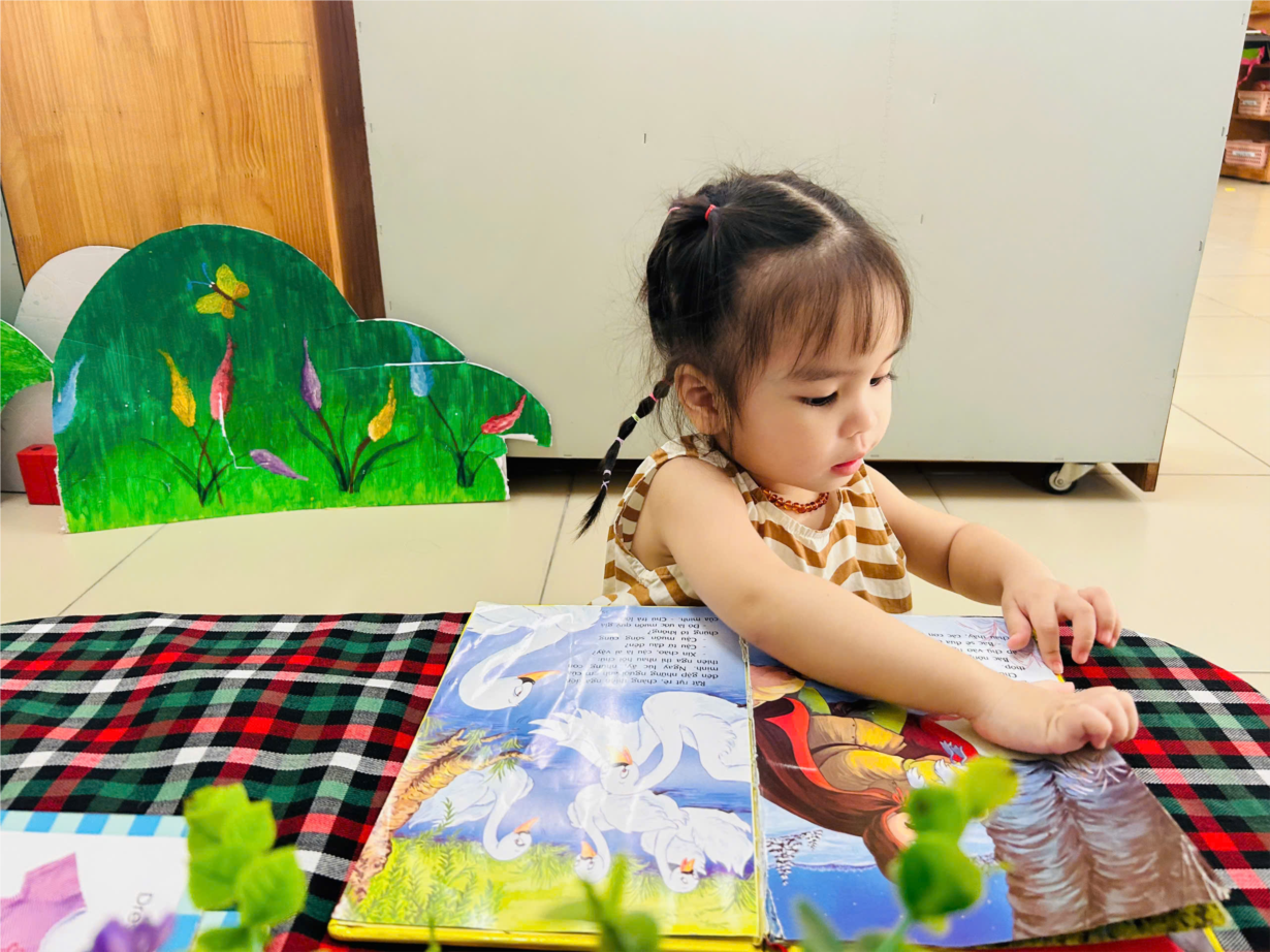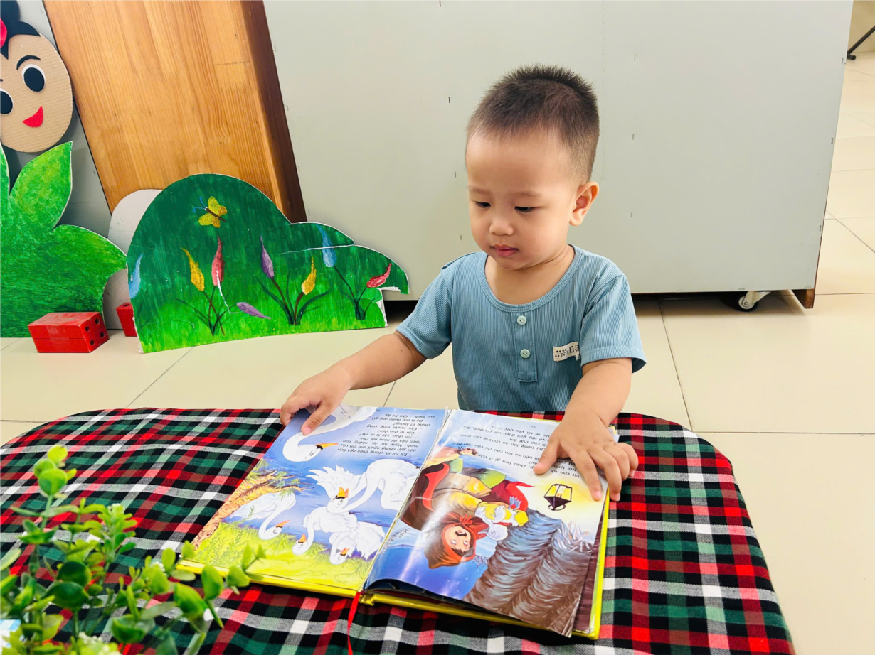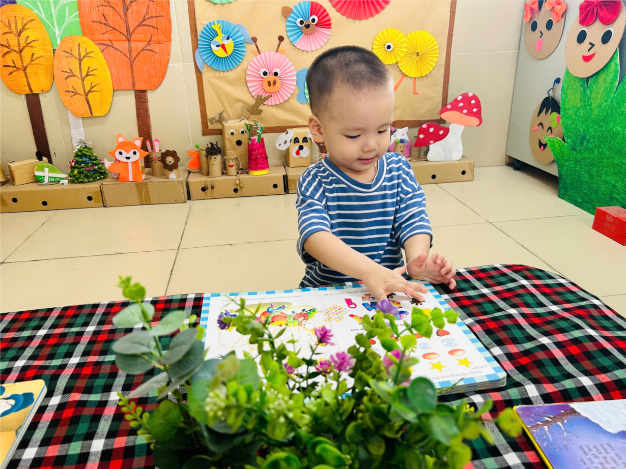 Các bé lớp Nhà trẻ D1 hứng thú khám phá sách