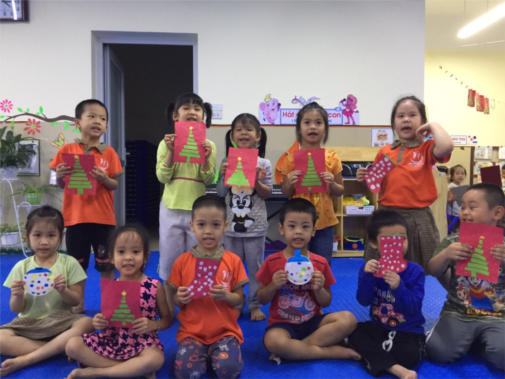 Bạn Linh Đan có vẻ đang rất hào hứng khi được làm cây thông mà mình thích