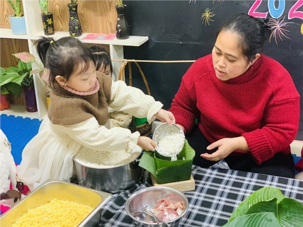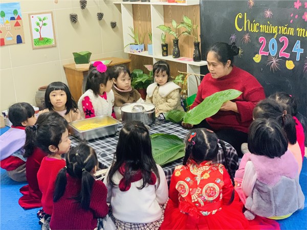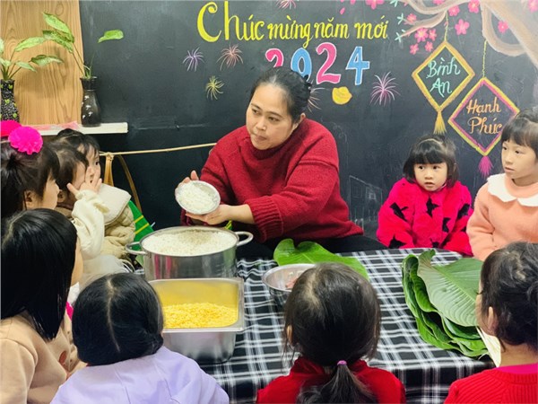 Tập ảnh : Hoạt động trải nghiệm gói bánh chưng lớp MGN B2