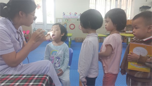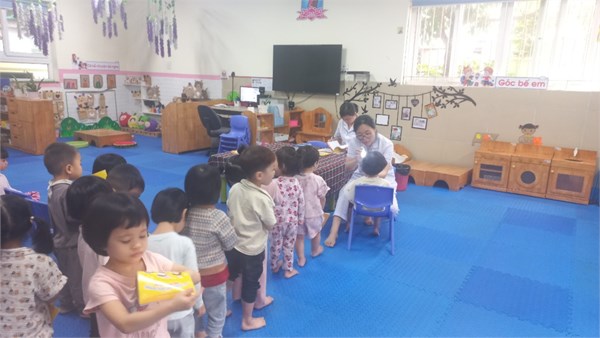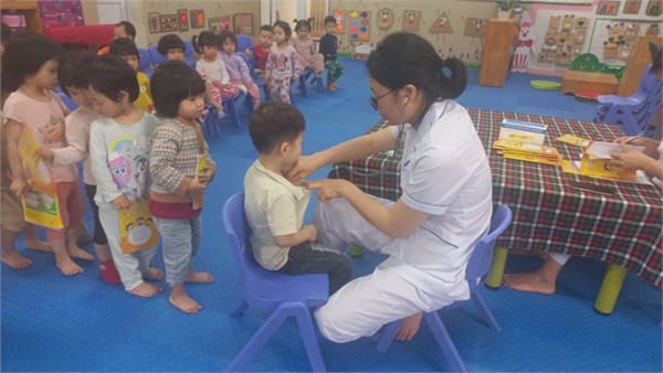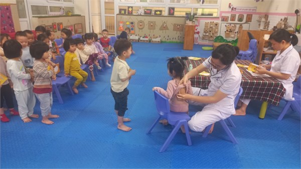 Tập ảnh : Khám sức khỏe của các bé lớp nhà trẻ D1