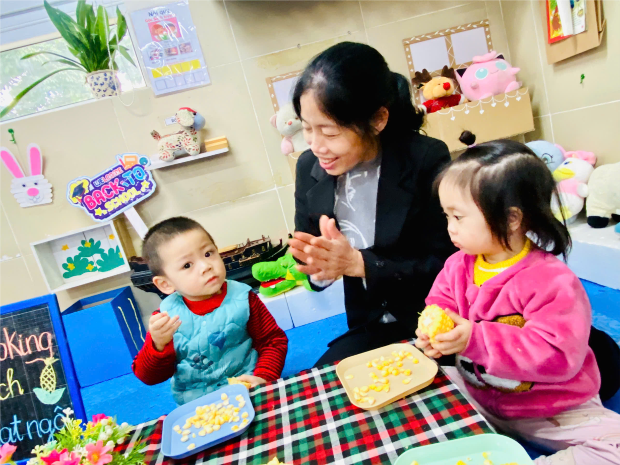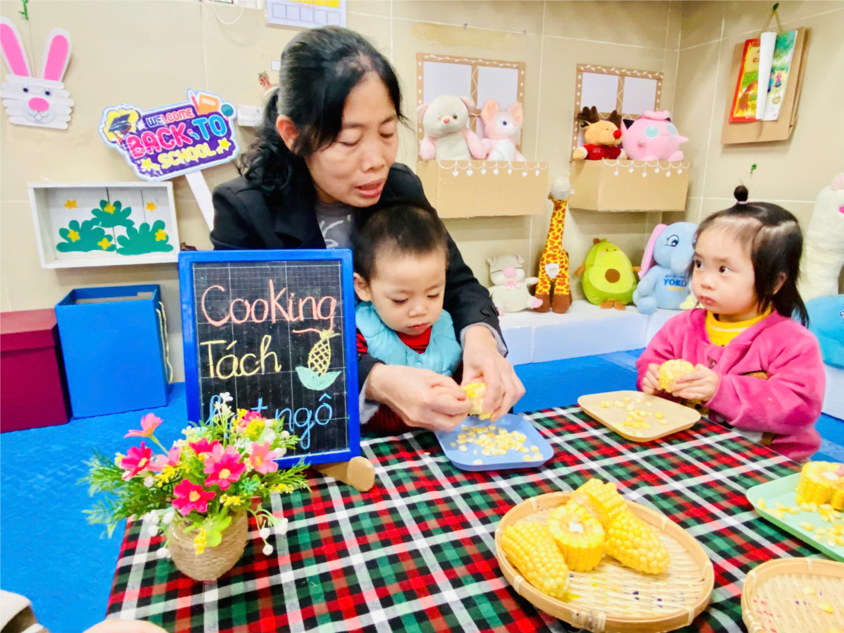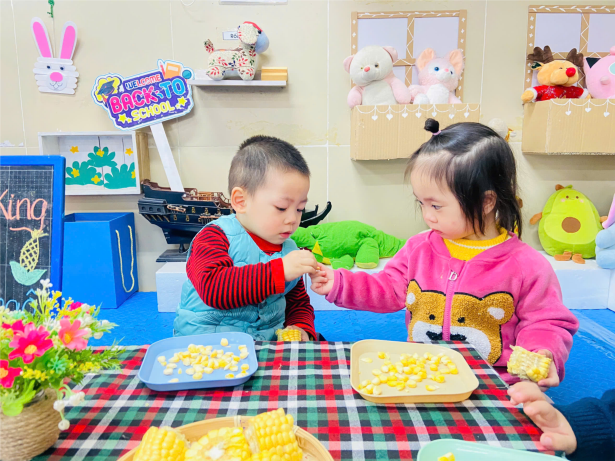 Ảnh đẹp tháng 2: Khéo tay hay làm – Bé lớp D2 vui học qua trò chơi tách hạt ngô
