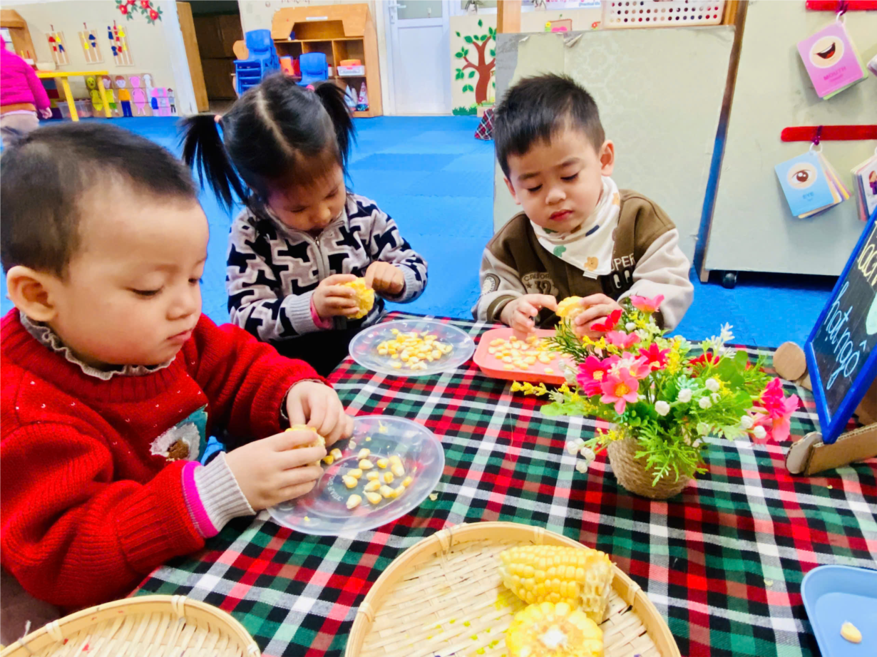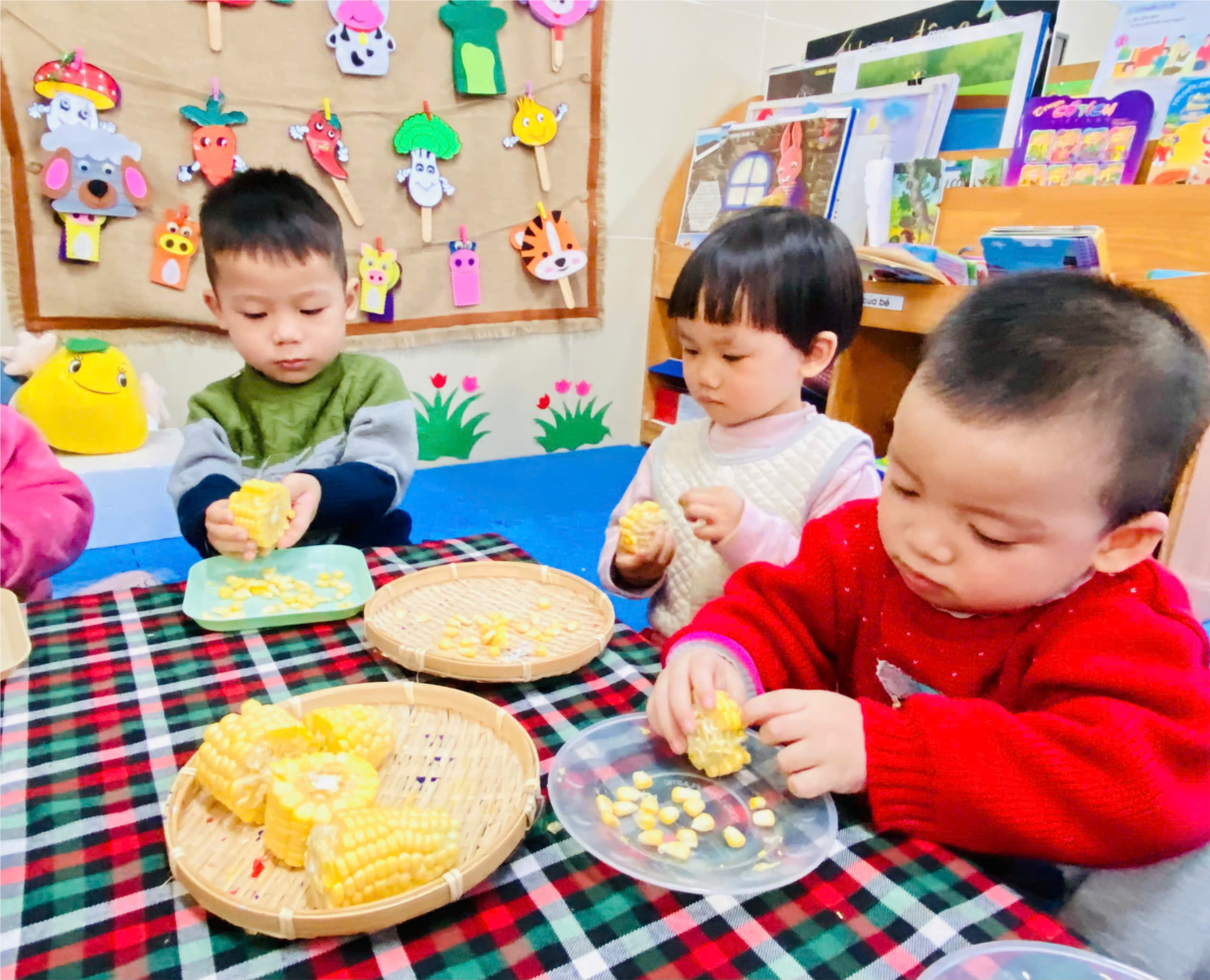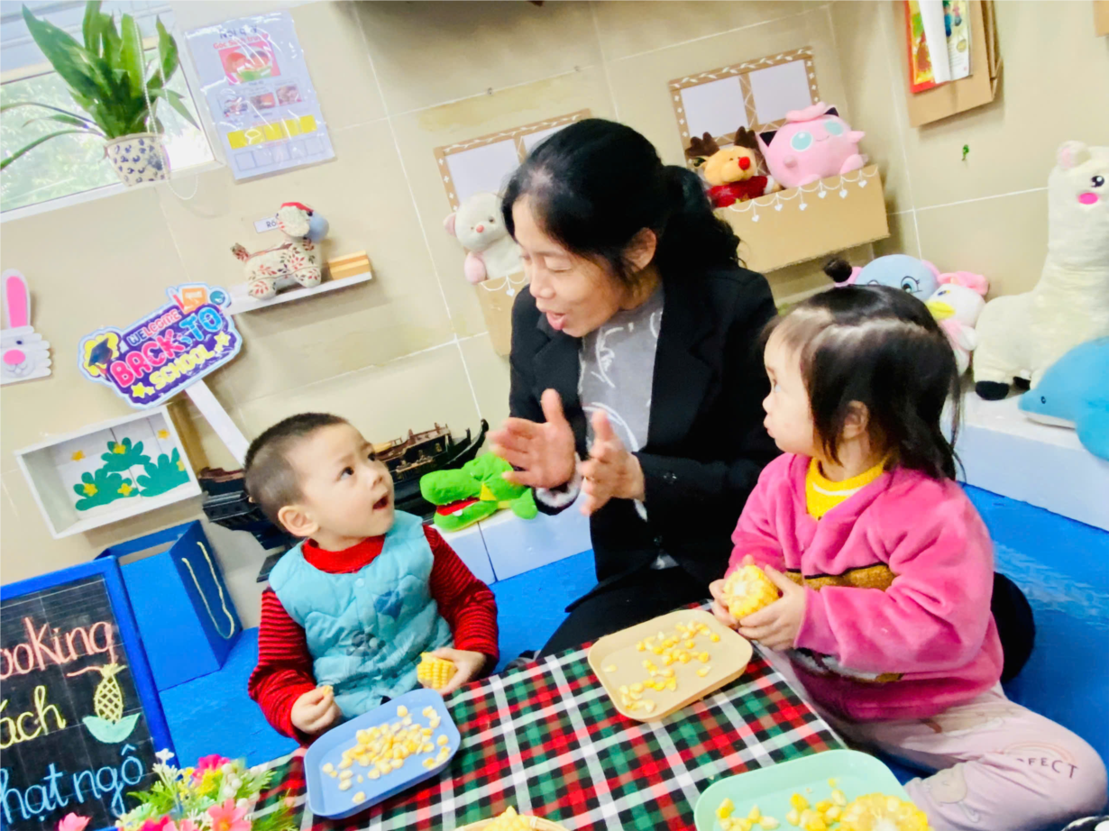 Ảnh đẹp tháng 2: Khéo tay hay làm – Bé lớp D2 vui học qua trò chơi tách hạt ngô